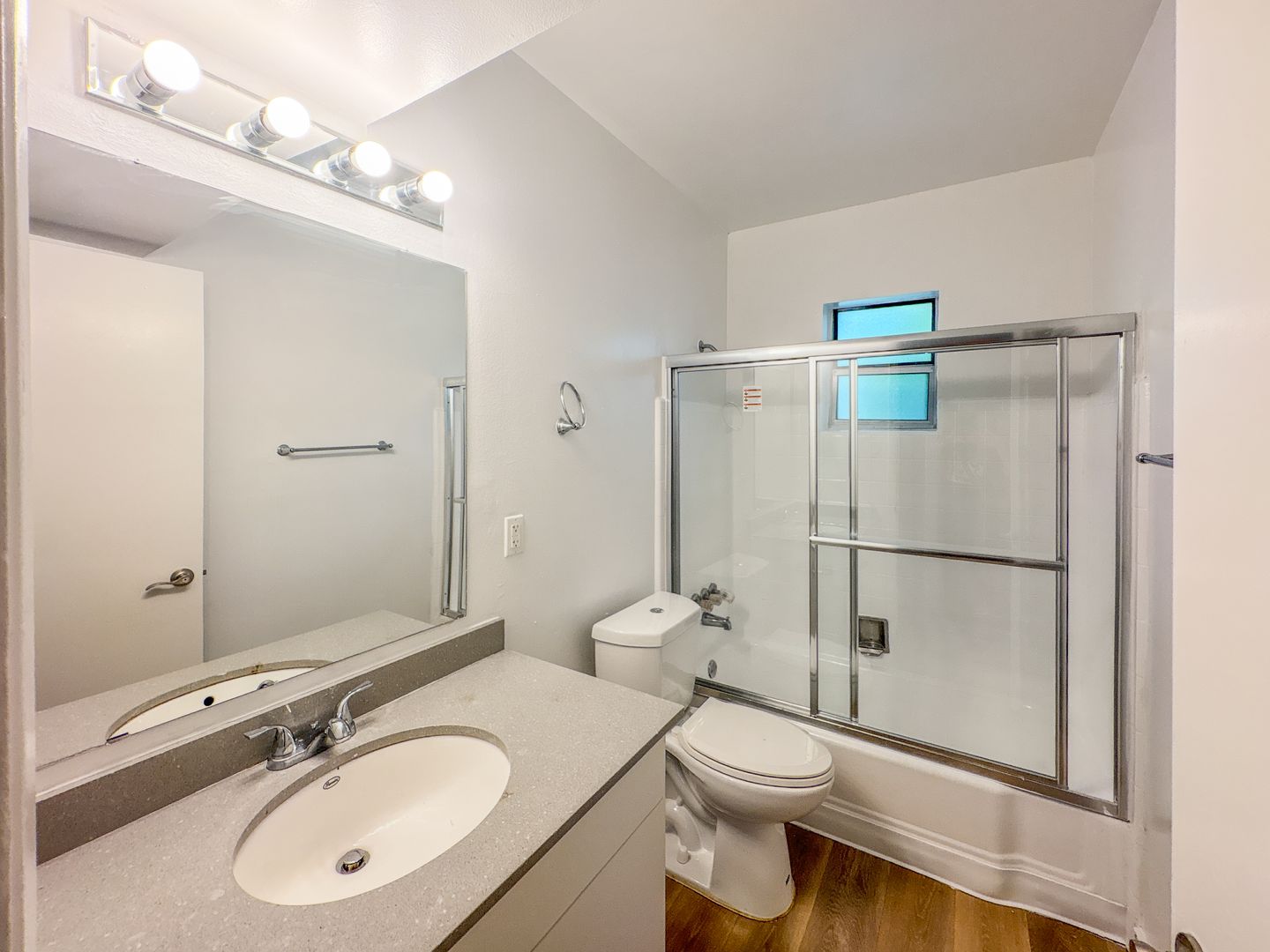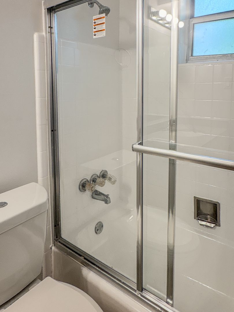 The spacious bedrooms offer ample closet space and a clean, minimalist aesthetic. The full bathroom is equally impressive, featuring an updated vanity, modern fixtures, and a tiled tub/shower combination.