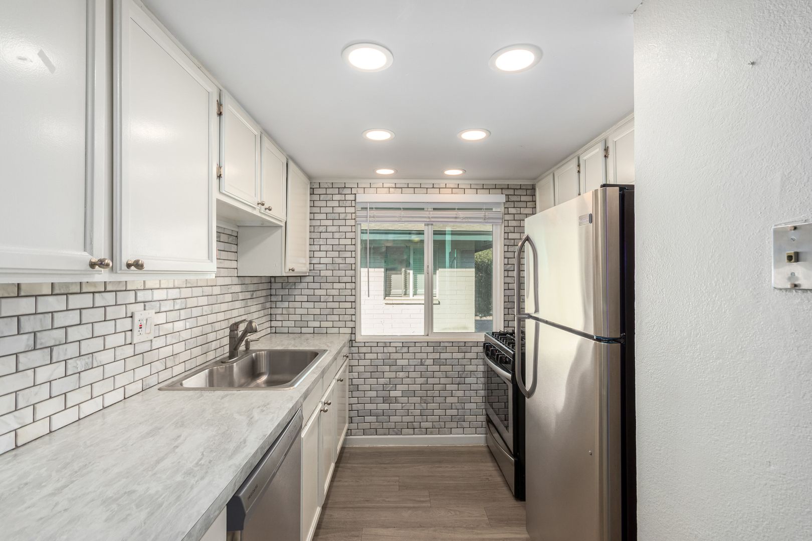 Light, wood-look vinyl flooring throughout for a clean and contemporary feel