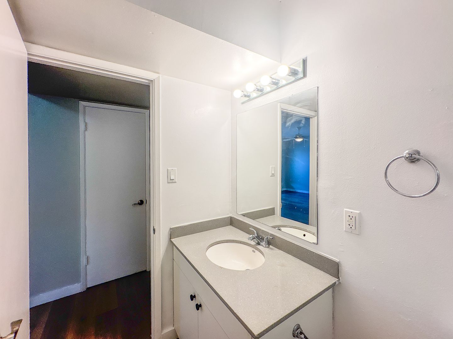 The spacious bedrooms offer ample closet space and a clean, minimalist aesthetic. The full bathroom is equally impressive, featuring an updated vanity, modern fixtures, and a tiled tub/shower combination.