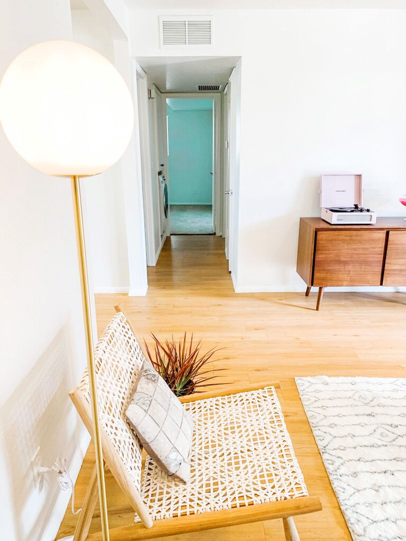 Welcome to 337 W Pasadena Ave! This renovated 2-bed, 1-bath apartment features wood-style flooring, fresh paint, modern ceiling fans, and a bright open floor plan. The stylish kitchen includes white cabinetry, quartz countertops, stainless steel appliances, and a bold designer backsplash.