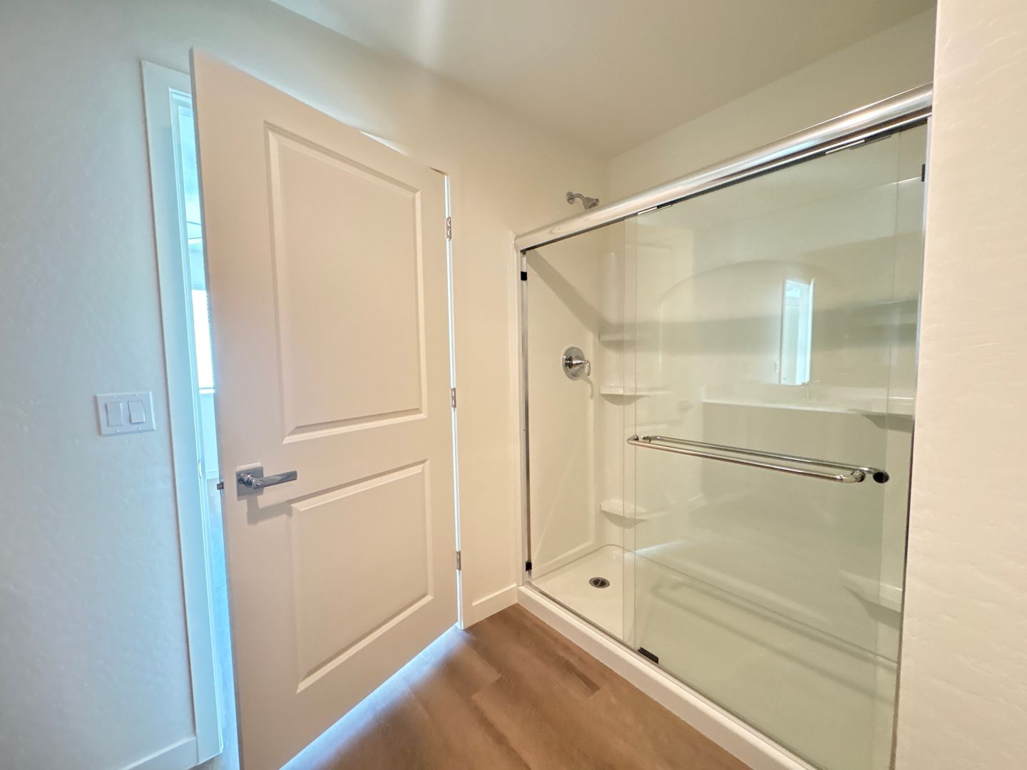 Each bathroom is well-appointed, featuring contemporary vanities and a walk-in glass-enclosed shower for a clean, modern feel. Additional highlights include in-unit laundry, updated fixtures, and thoughtful design throughout.